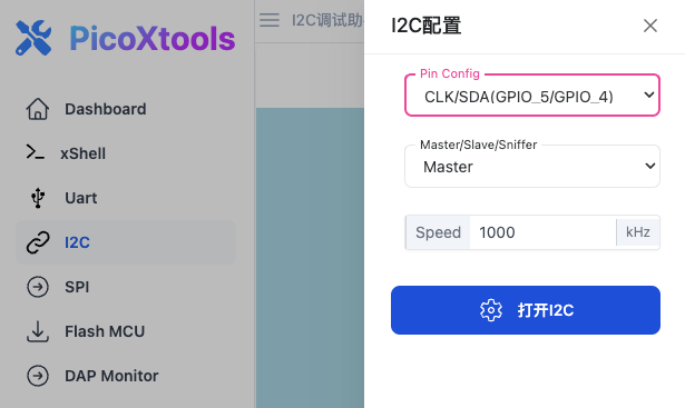 PicoXtools 中的 I2C 调试助手,专为 I2C 设备调试设计,适配嵌入式开发、硬件性能测试场景。支持最高 4M 时钟,无需额外上位机,内置 Web 服务器,可图形化完成设备扫描、寄存器读写、参数配置,高效排查 I2C 总线通信问题,提升调试效率。